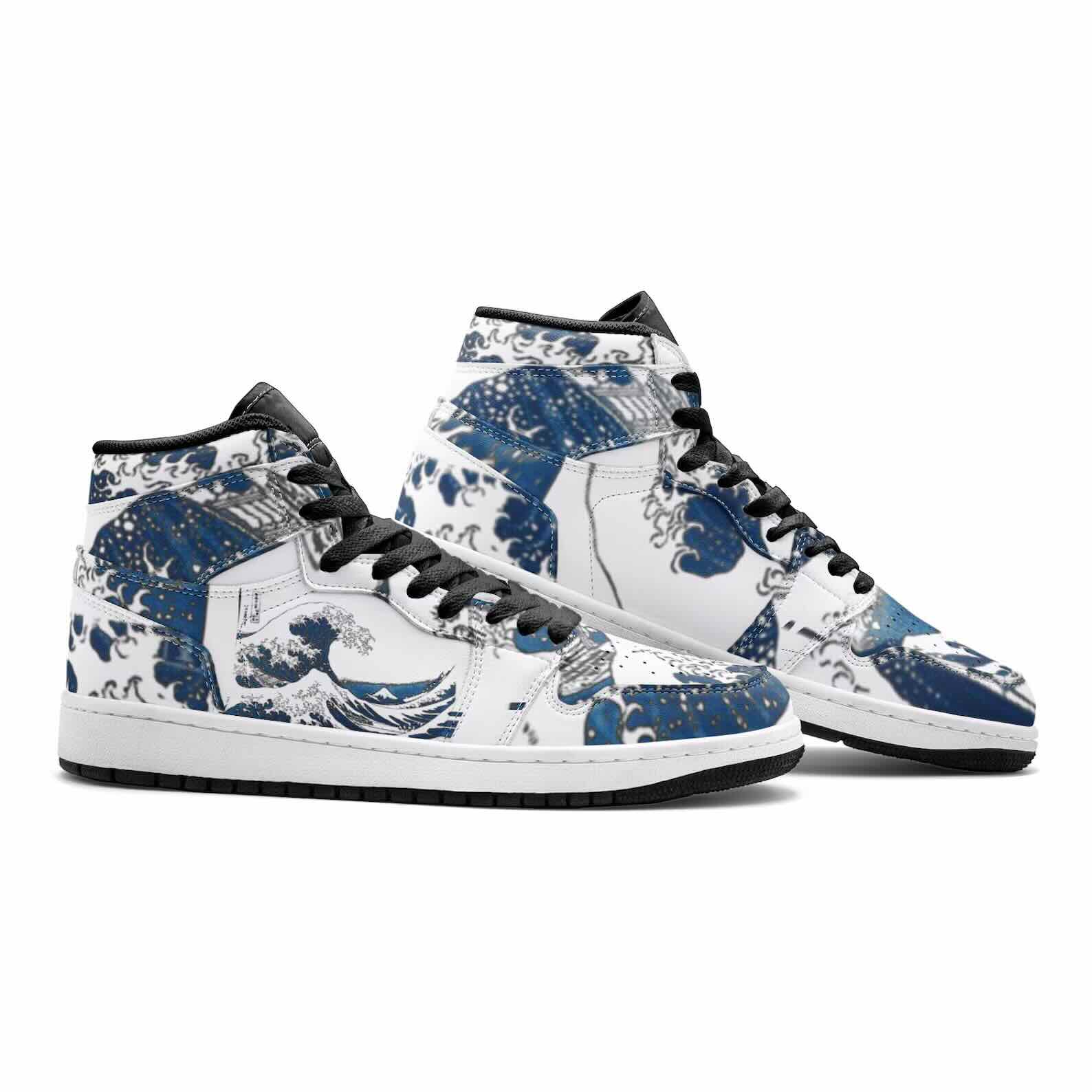 Great Wave Sneakers, Great Wave of Kanagawa High Tops Shoes, Katsushika Hokusai, Japan Art, Premium Unisex Sneaker TR.